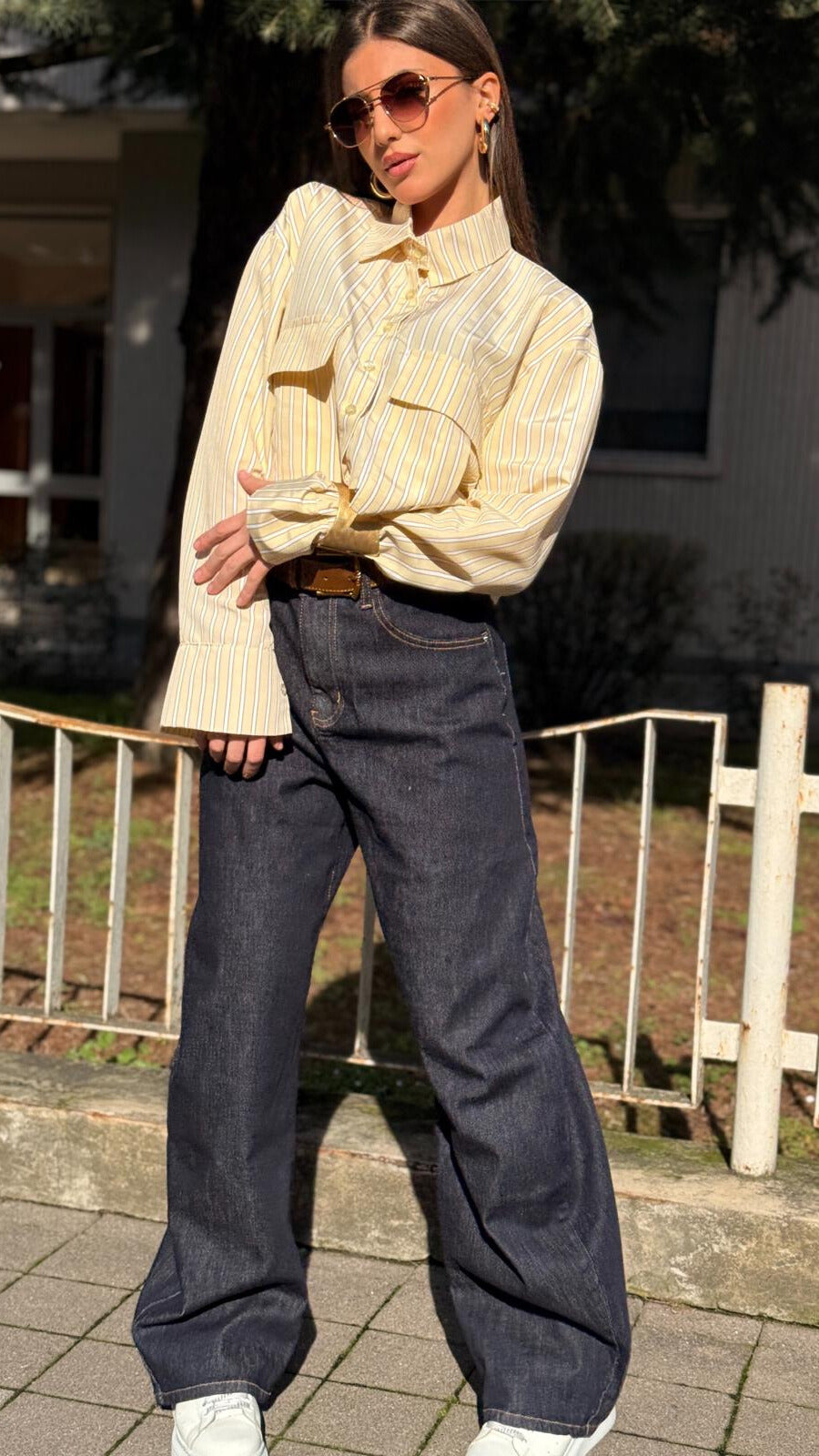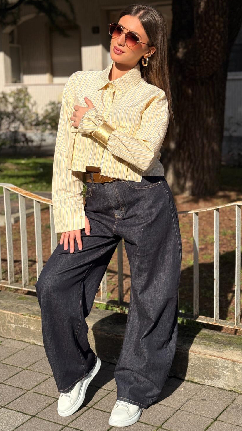 CAMICIA CROP STRIPE GIALLA