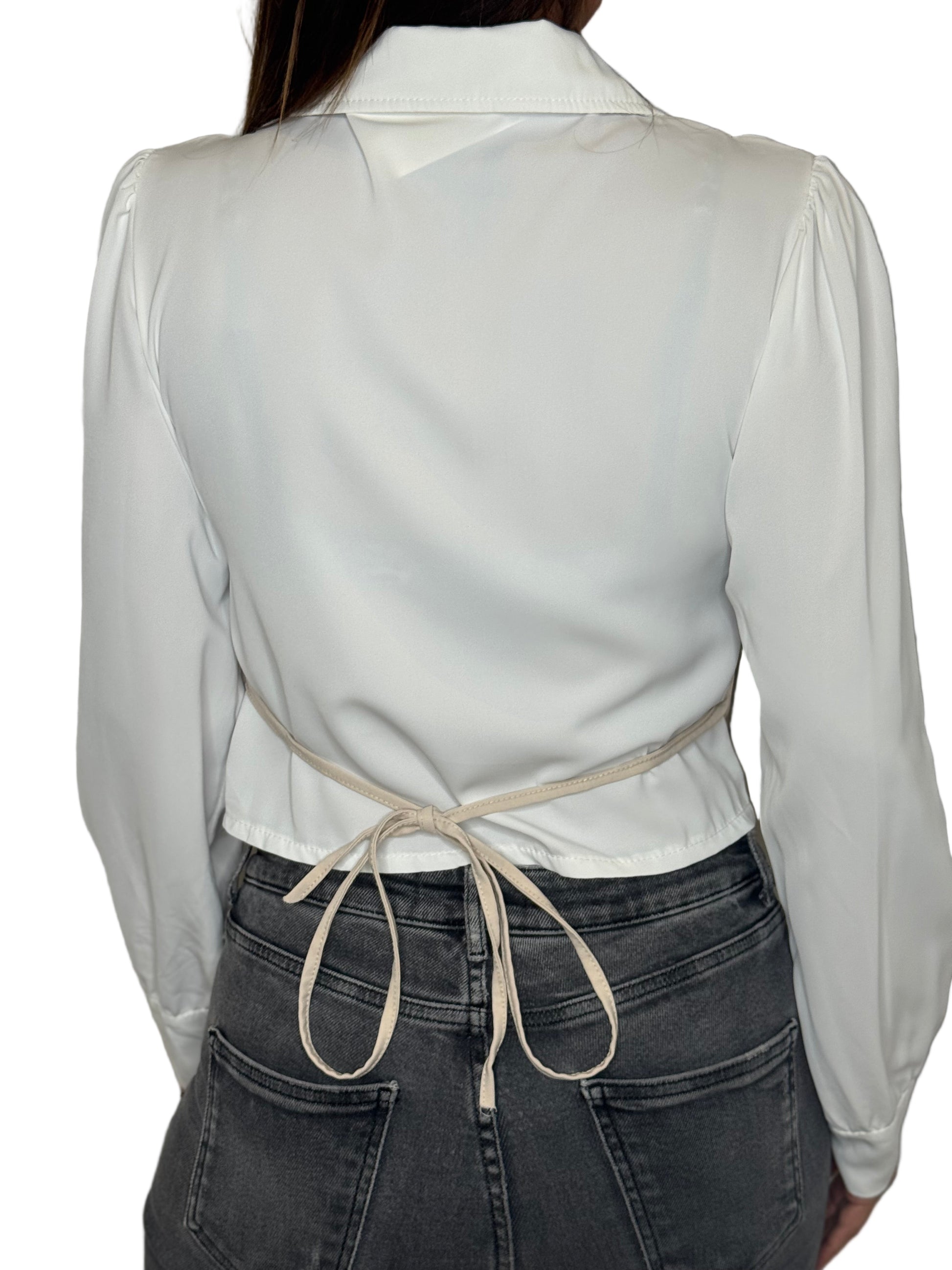 Camicia bianca con gilet integrato β Un capo due in uno dal design sofisticato: camicia elegante con maniche a sbuffo e gilet cucito, per un look strutturato e moderno.