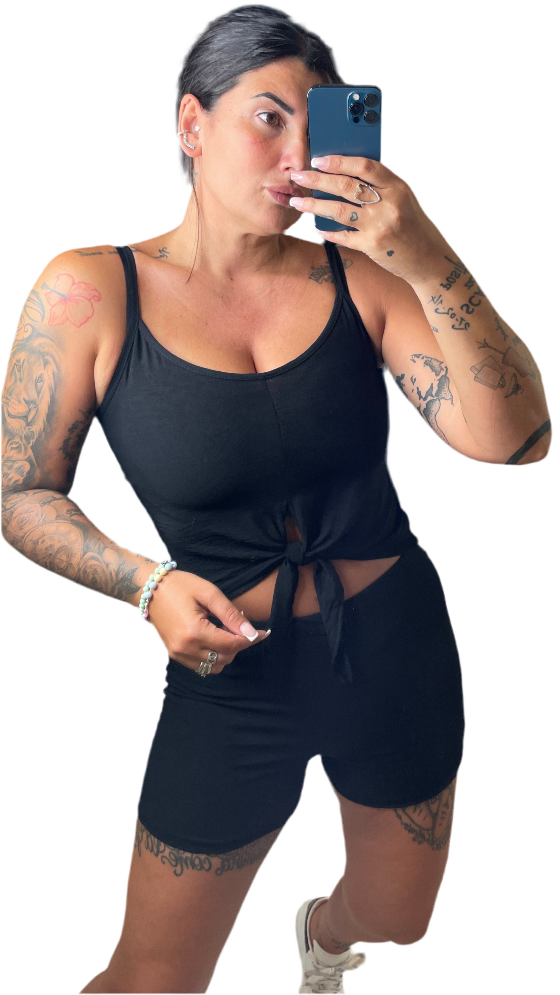 Completo morbido ed elasticizzato composto da pantaloncino e canotta con fioccoΒ