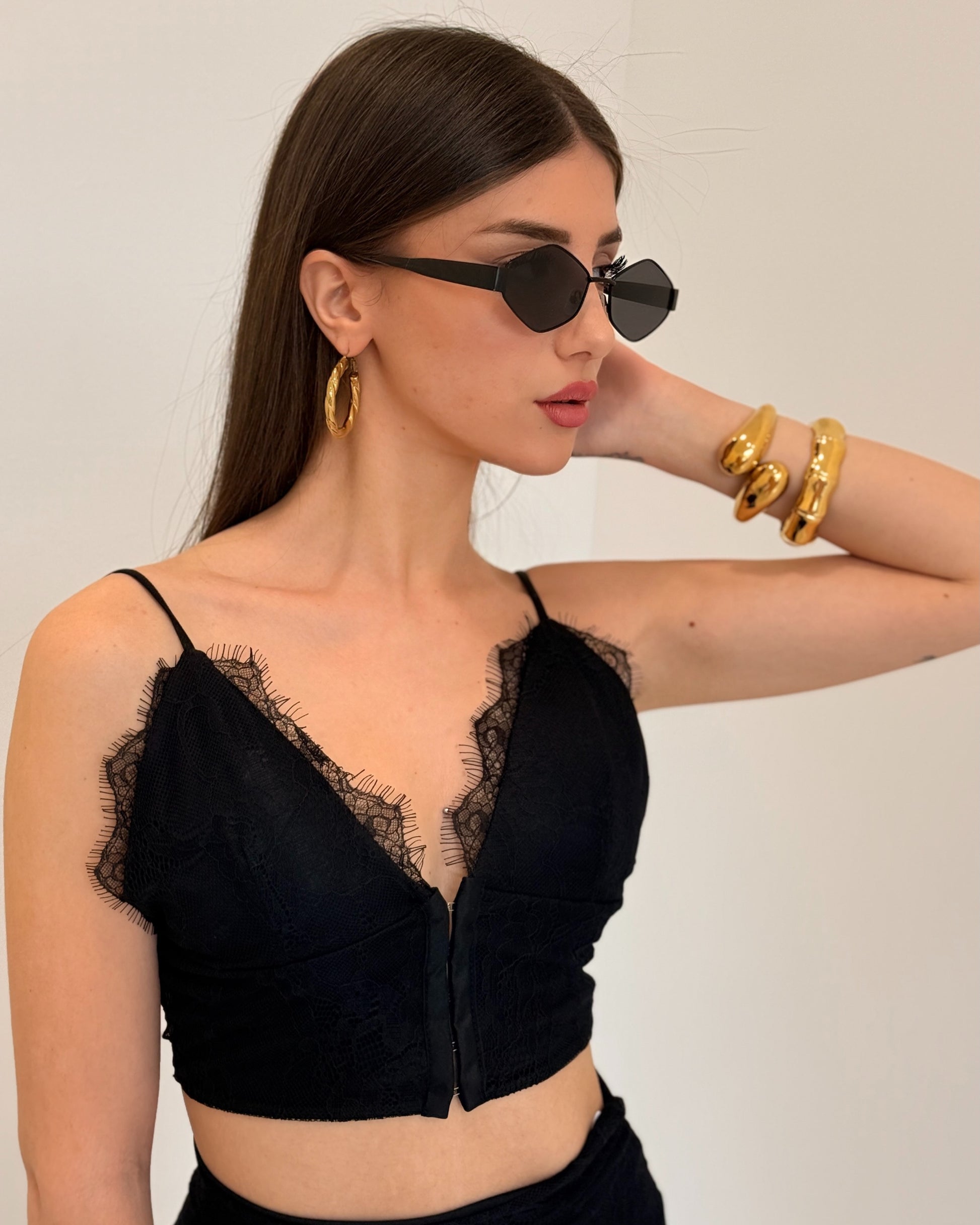 Completo in pizzo composto da corpetto con spalline regolabili e coppe, con chiusura davanti, Longette con spacco sul retro e cerniera, elasticizzato