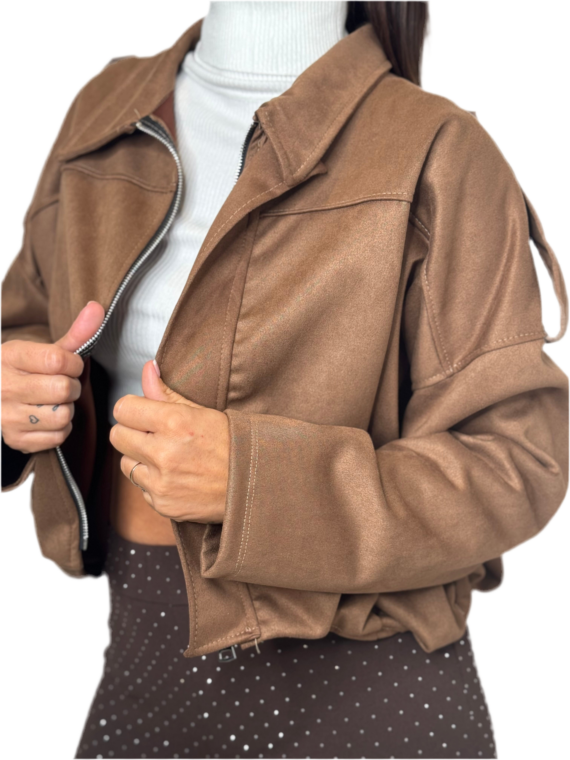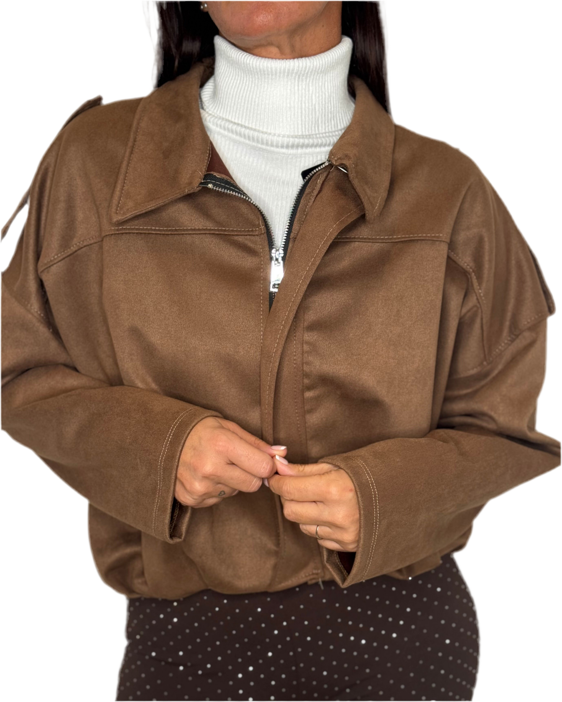 Giacca con punto spalla basso e cerniera, vestibilità morbida