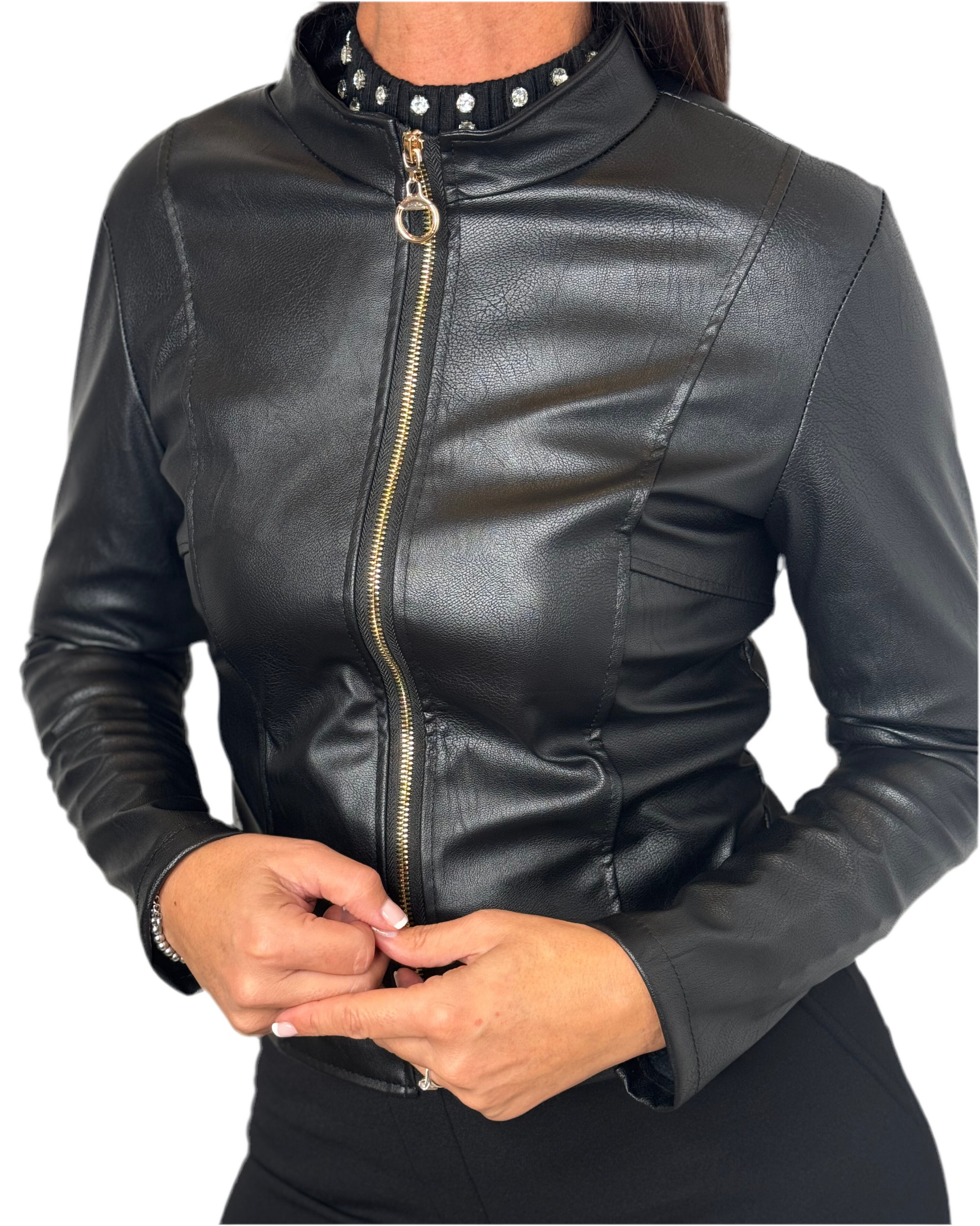 Giacca pelle con cerniera vestibilità anche Curvy