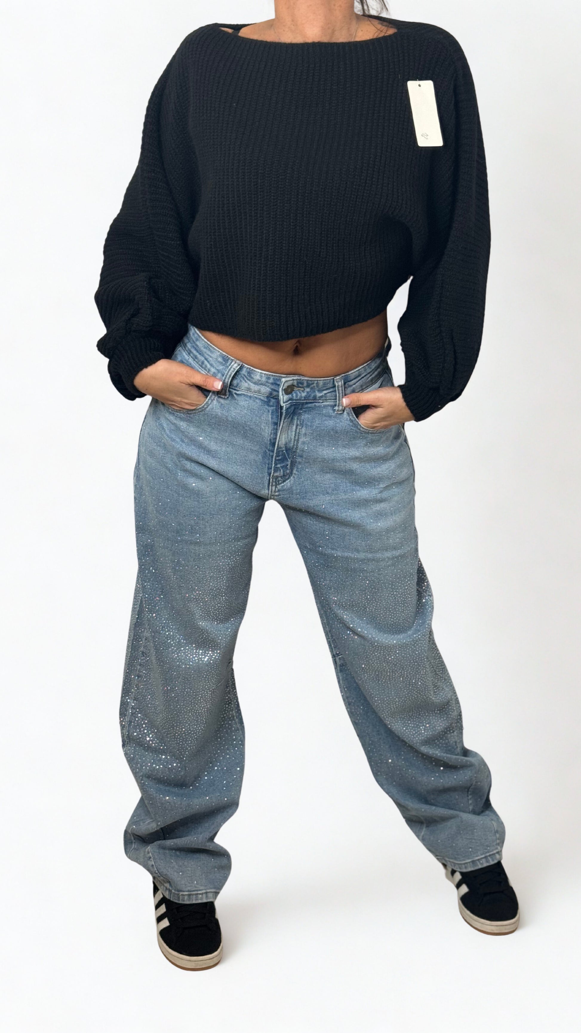 Jeans baggy con brillantini sul davanti e sul retro, morbidi ed elasticizzati