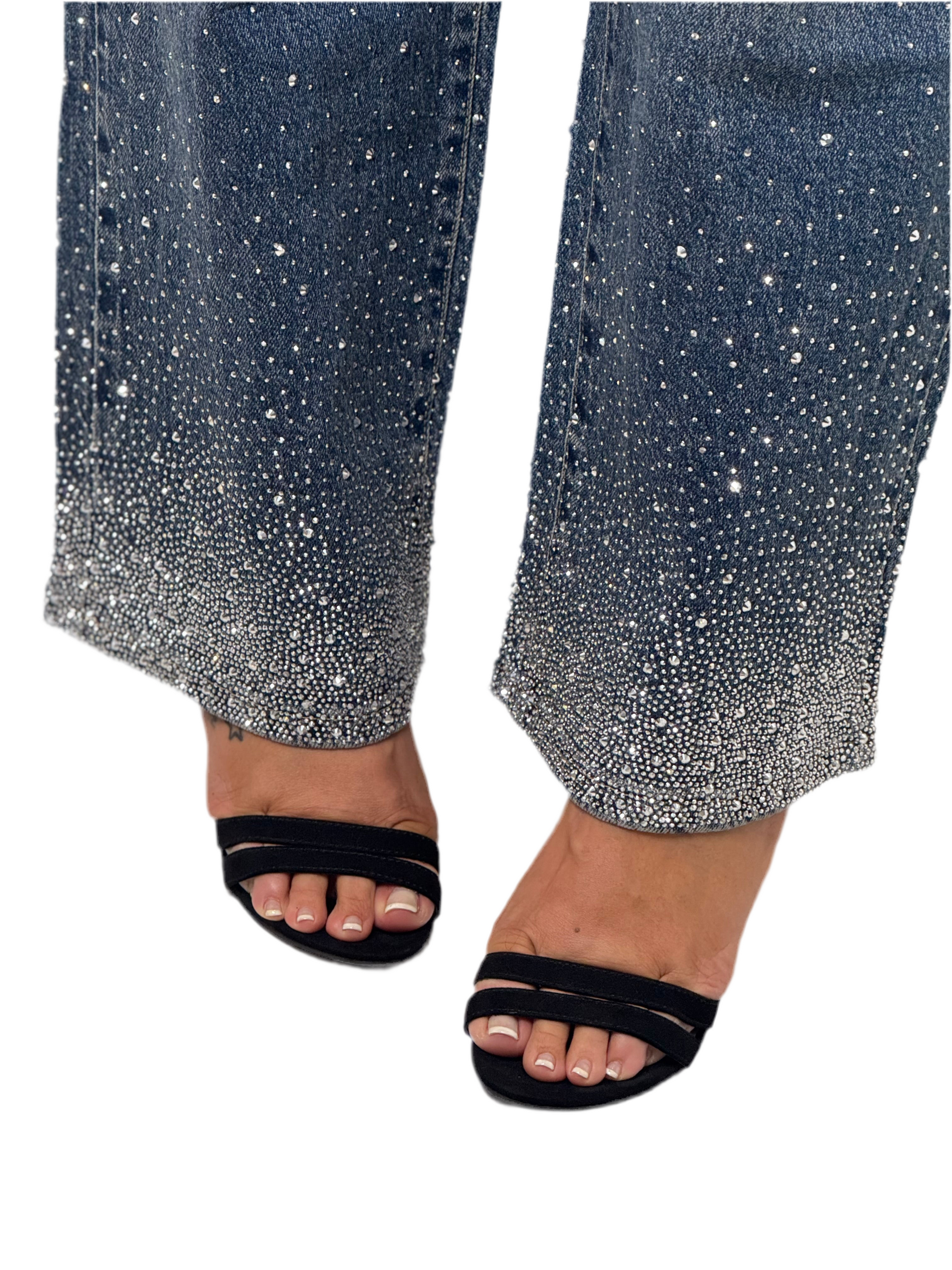 Jeans a palazzo con brillantini solo sul fondoΒ