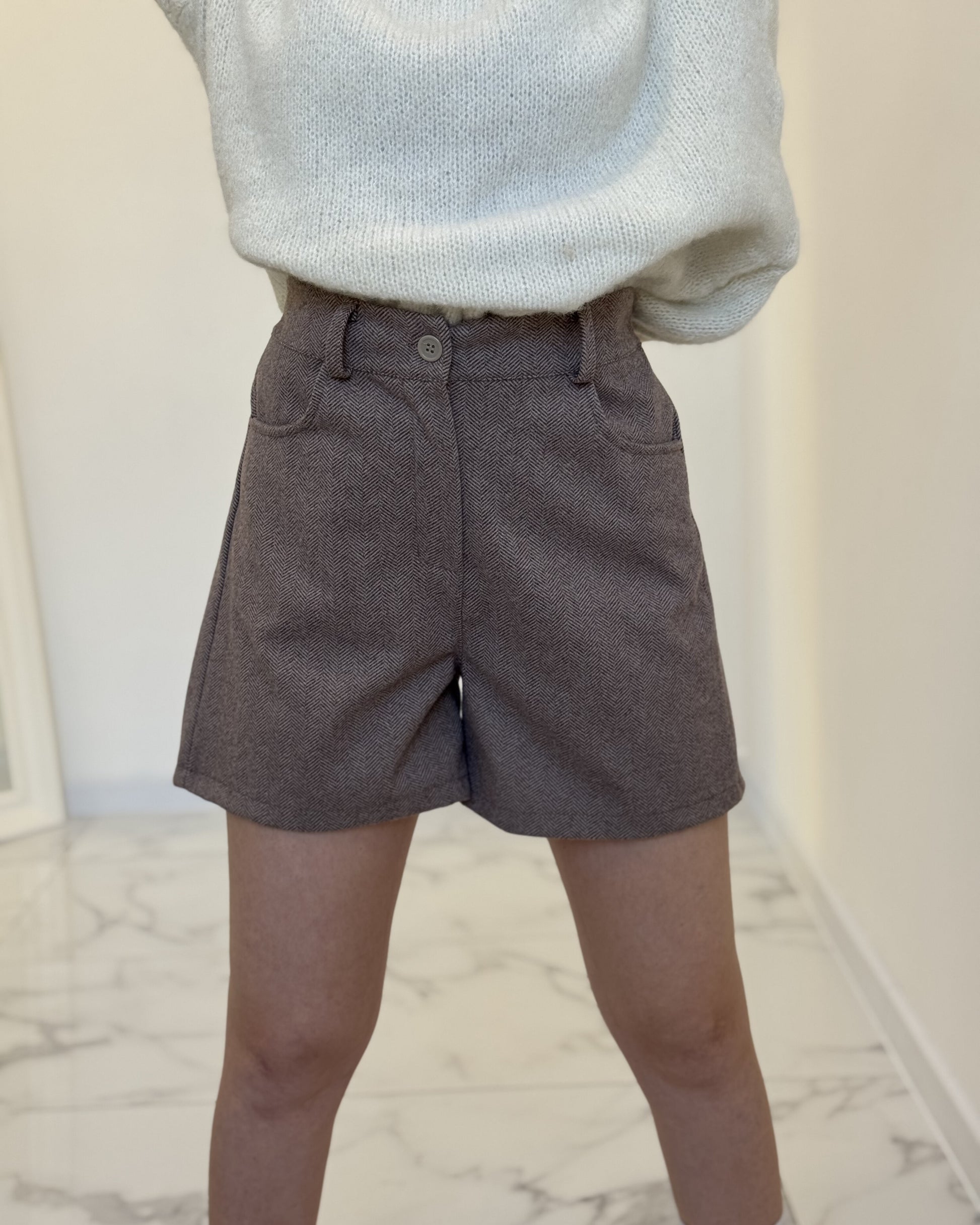 Pantaloncino fantasia geometrica con bottone, cerniera e elastico sul retro